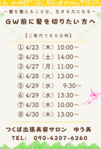 様々な理由で美容室へ行くことが難しい方の元へ伺い、ヘアカットをはじめ、お着付け・ヘアメイクを行う出張美容サービスをしております。