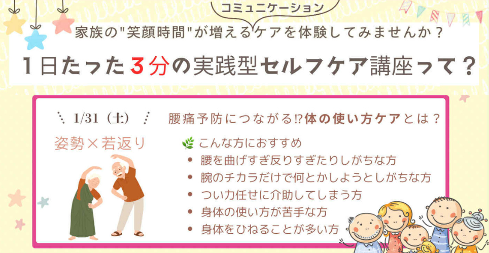 在宅介護で役に立つ!!1日たった3分のセルフケア講座 2/3でした。