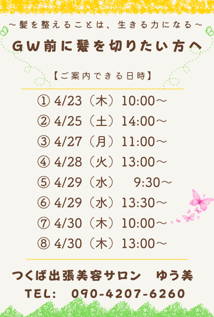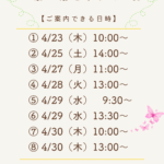 ※枠が埋まり次第終了となりますので、早めにご相談下さい。